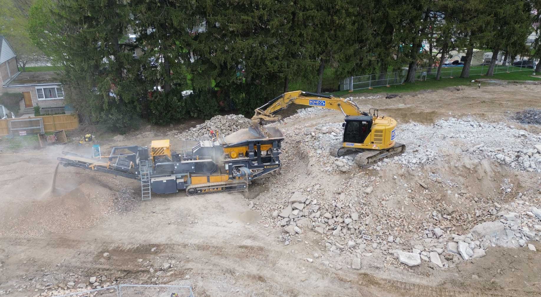 We crush concrete and asphalt on-site, reducing disposal costs and environmental impact. Recycled material is reused as fill or aggregate, promoting sustainability and cost savings.